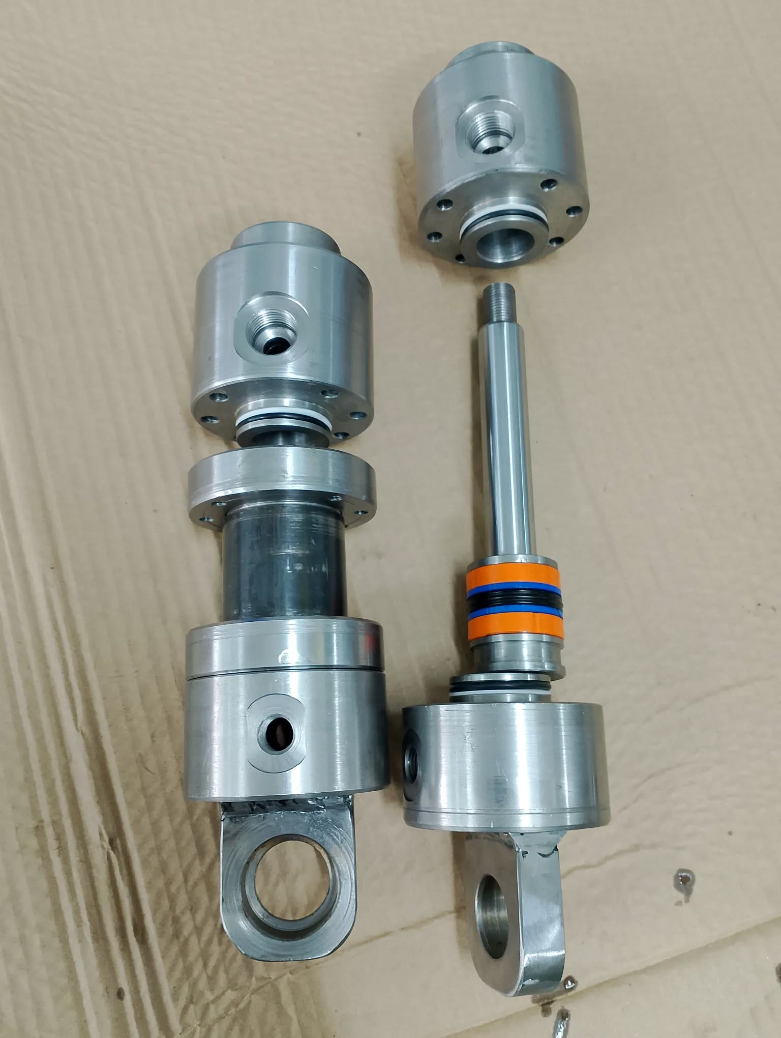 Bushings, on the other hand, are typically used to support and guide the piston rod as it extends and retracts from the cylinder. They provide a smooth surface for the piston rod to slide on, reducing friction and preventing lateral movement or wobbling of the piston rod. This is crucial for maintaining the stability and precision of the hydraulic cylinder's operation. In a hydraulic system for a robotic arm, the bushings support the piston rods of the hydraulic cylinders, allowing the arm to move with high precision and repeatability.