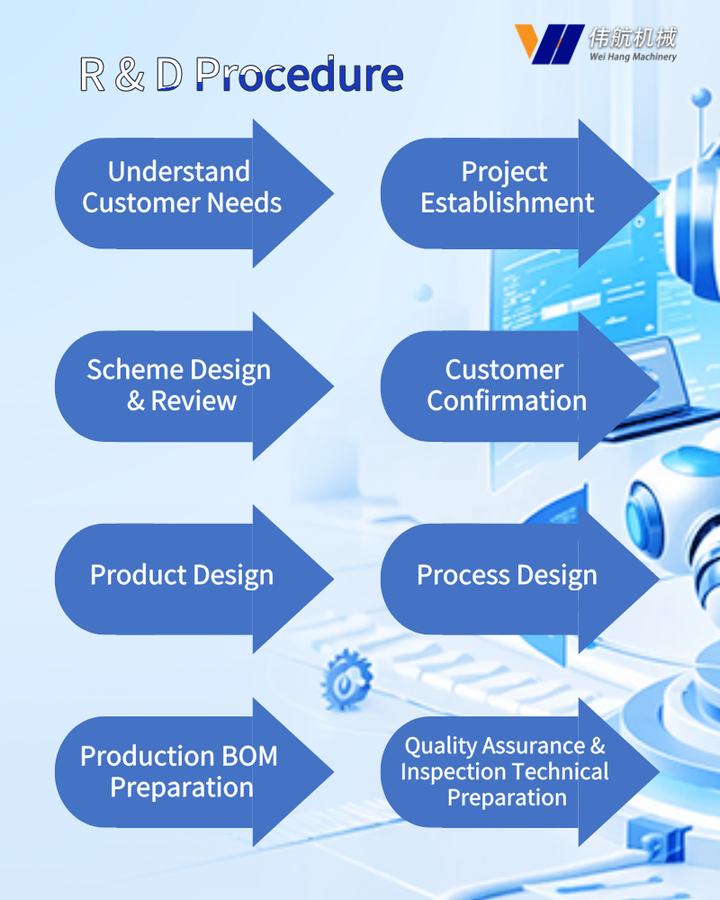 Weihang Machinery conducts brand-new development and design changes according to customer requirements and provides customized services for customers. While introducing senior technical talents from outside, we have always attached great importance to the cultivation of R & D personnel. Through irregular professional training and technical exchanges, we update knowledge and concepts to meet the requirements of the company's continuous development and growth, and have formed an R & D team that is pragmatic, innovative and upward.